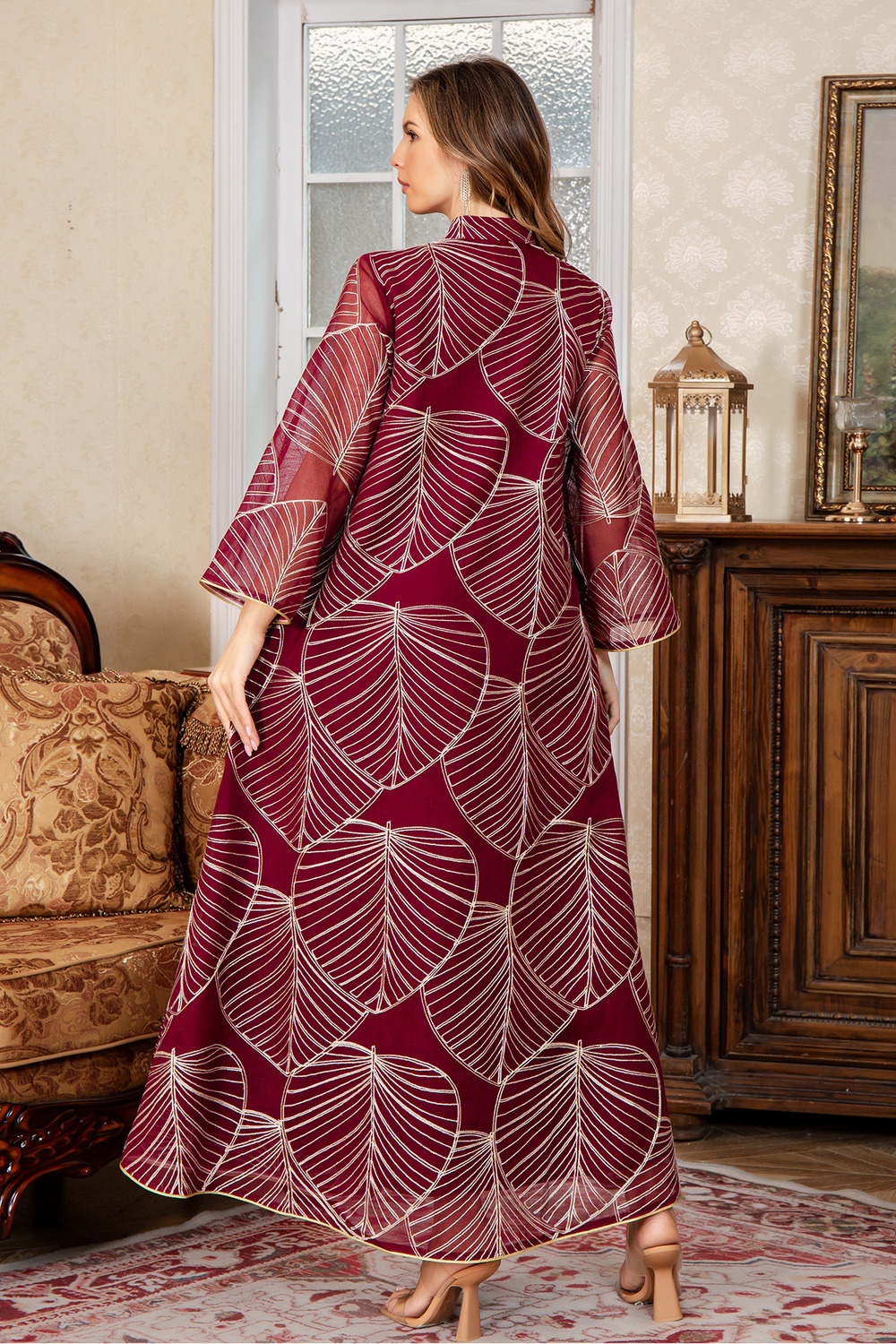 La coupe ample type caftan assure un tombé fluide et confortable, idéal pour sublimer la silhouette sans la contraindre.