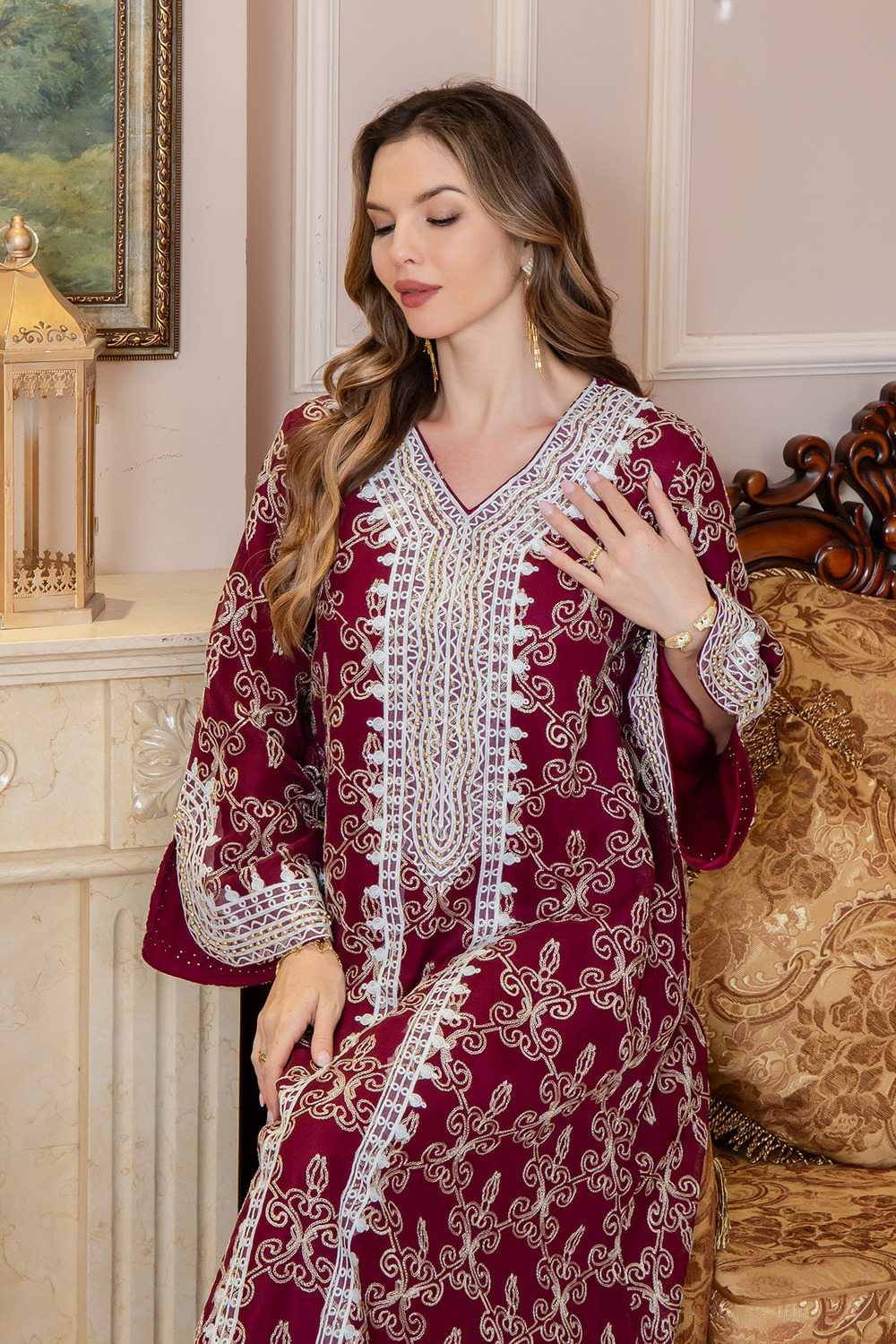 Tenue chic au souffle oriental, imaginée pour une présence distinguée et moderne.