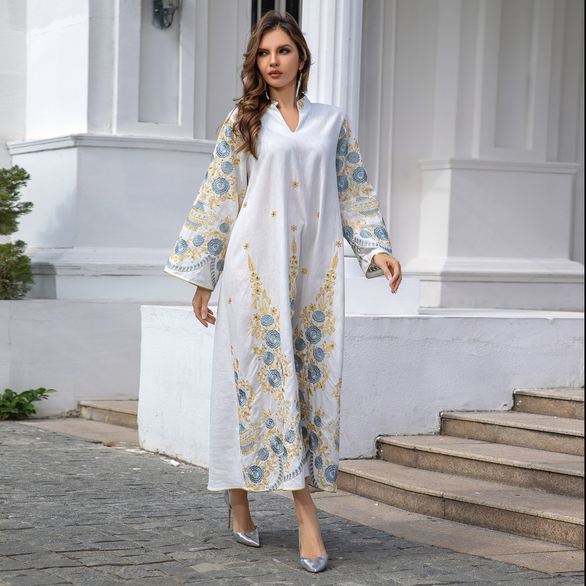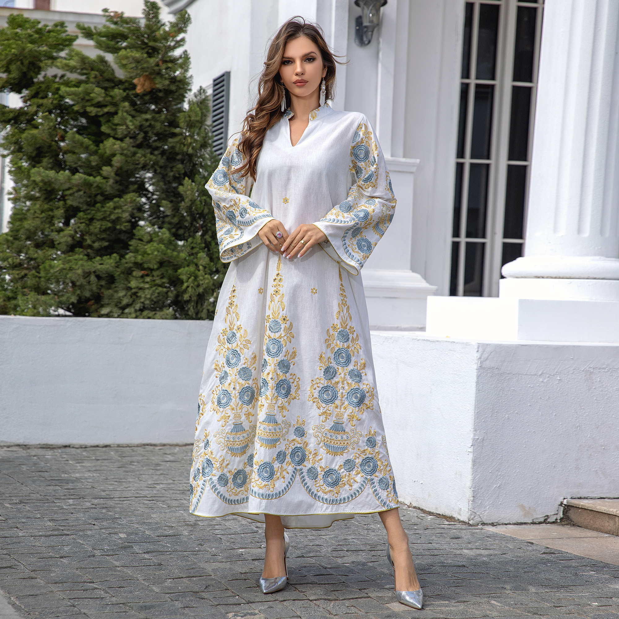 Broderies arabesques raffinées - Coupe longue et fluide - Allure chic, féminine et intemporelle
